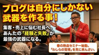 ブログセミナーの様子 人生が変わる一歩!ブログで未来を切り拓け 人生を変える武器を持っとるか? わしは本気でその作り方を教えとるんよ 集客や商売に不安があるなら まずは話を聞いてみんさい 春から新しい自分を作るチャンス ここにあるけえ! ブログ責任者の 板坂裕治郎とは・・・ 業界の常識をぶち破り 誰から... 2026.02.16 ブログセミナーの様子